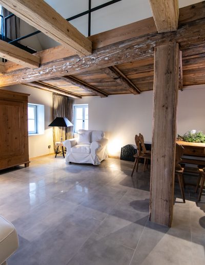 Ziel war es, zwei eigenständige Wohneinheiten zu schaffen – mit viel Charakter und Respekt vor dem historischen Bestand. Spannend war dabei die Lage: Das Gebäude wurde direkt auf der alten Stadtmauer errichtet, die bis heute die Außenwand bildet.