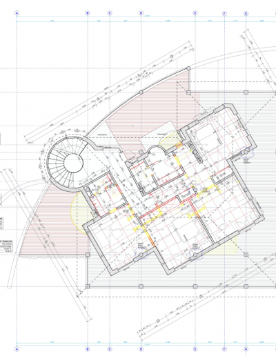 Diese großzügige Villa wird für eine deutsche Unternehmensgruppe zu einem repräsentativen Headoffice umgestaltet. Geplant sind moderne Büroflächen, stilvolle Besprechungsräume sowie drei hochwertige In-Suite-Bereiche. Im Zuge der umfassenden Sanierung wird die bestehende Raumstruktur teilweise angepasst, Bodenbeläge erneuert, die Bäder modernisiert und Dach- sowie Terrassenflächen instandgesetzt. Die Elektroinstallation samt Beleuchtungskonzept wird vollständig neu geplant. Großzügige Wandverkleidungen mit Grauspiegeln sowie eine maßgeschneiderte Möblierung unterstreichen den hochwertigen, eleganten Gesamtausdruck.